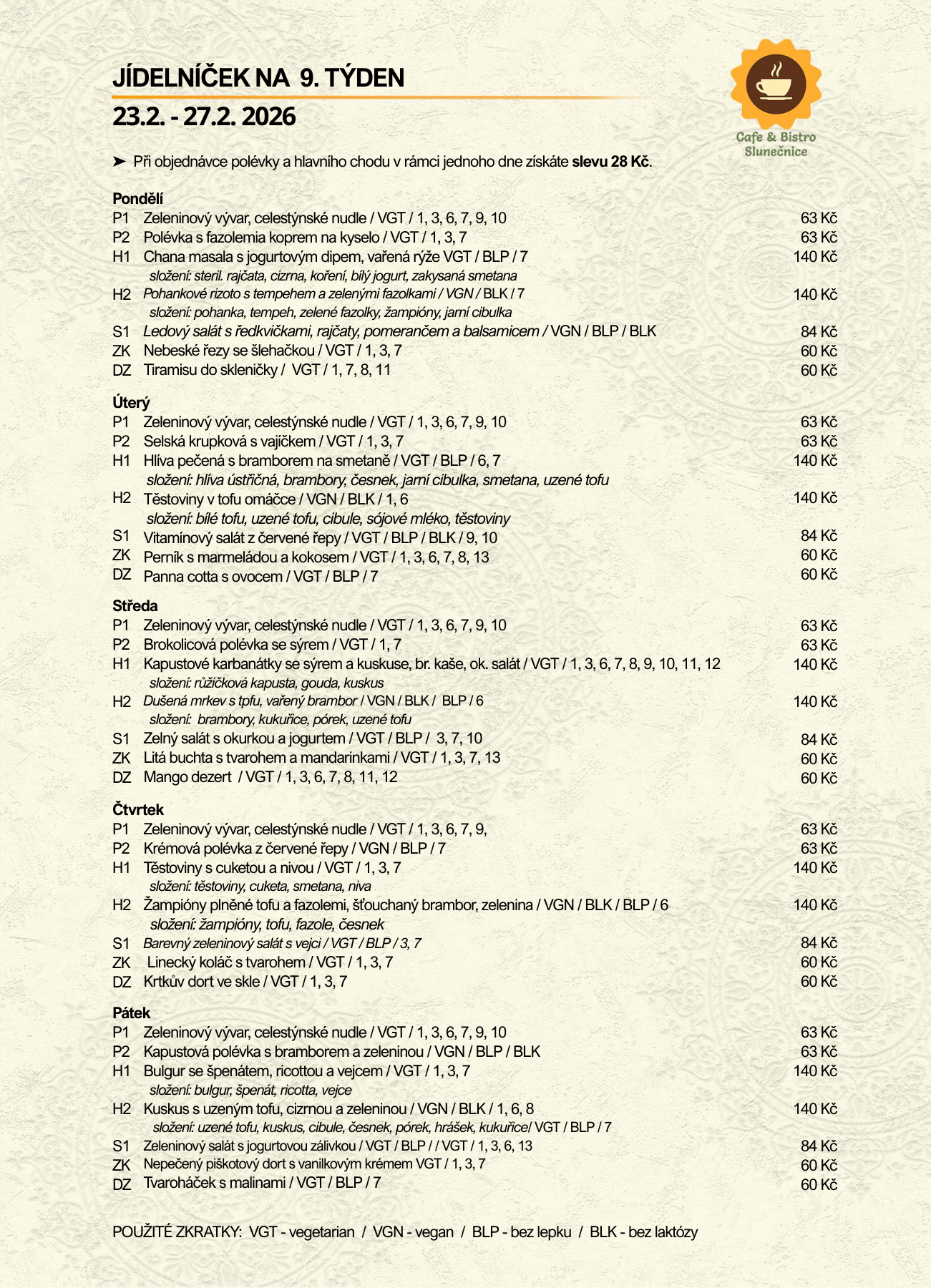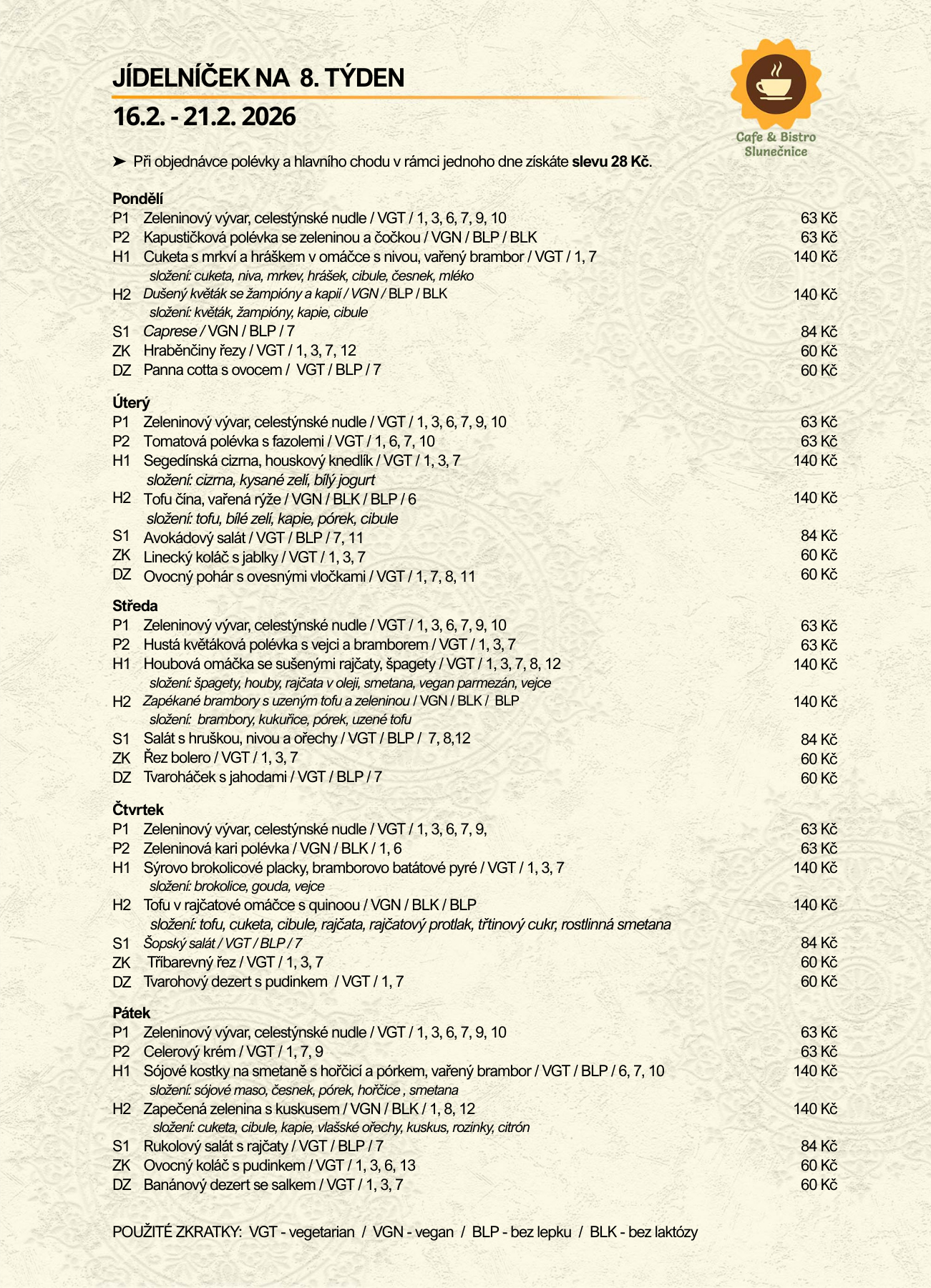 Každé pondělí až čtvrtek do 14:00 h. můžete objednávat na další týden.